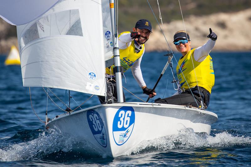 Silvia Mas ve Nico Rodriguez (İspanya) bugün podyumdan düşerken, bronz madalyayı İtalyanlardan geri almak için iyi bir konumdalar. Maas, “Bizim için zor bir gündü. Rüzgardaki değişikliklere ve günün meydan okumasına bu kadar çabuk tepki vermemiş olabiliriz. Ama yine de haftamızdan memnunuz, yeni bir ekip olarak öğrenmek için bir sürü not alıyoruz. Burada yelken açmaktan heyecan duyuyoruz ve hala madalya kazanma şansımız var.”