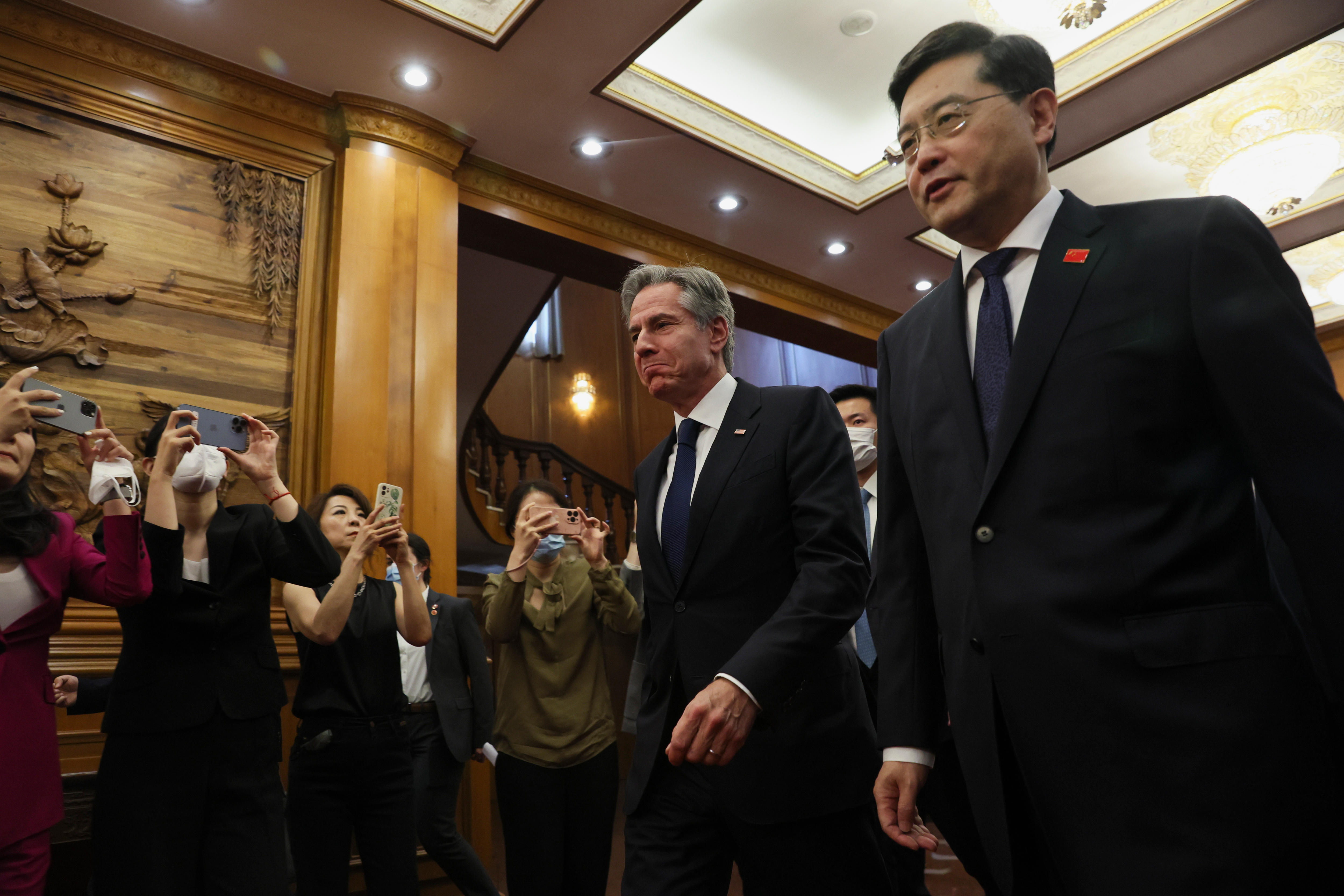 Çin Dışişleri Bakanı Qin Gang, Bay Blinken ve grubunu her zamanki gibi binanın içinde değil, Pekin’deki Diaoyutai Devlet Konukevi arazisindeki bir villanın kapısında karşıladı.