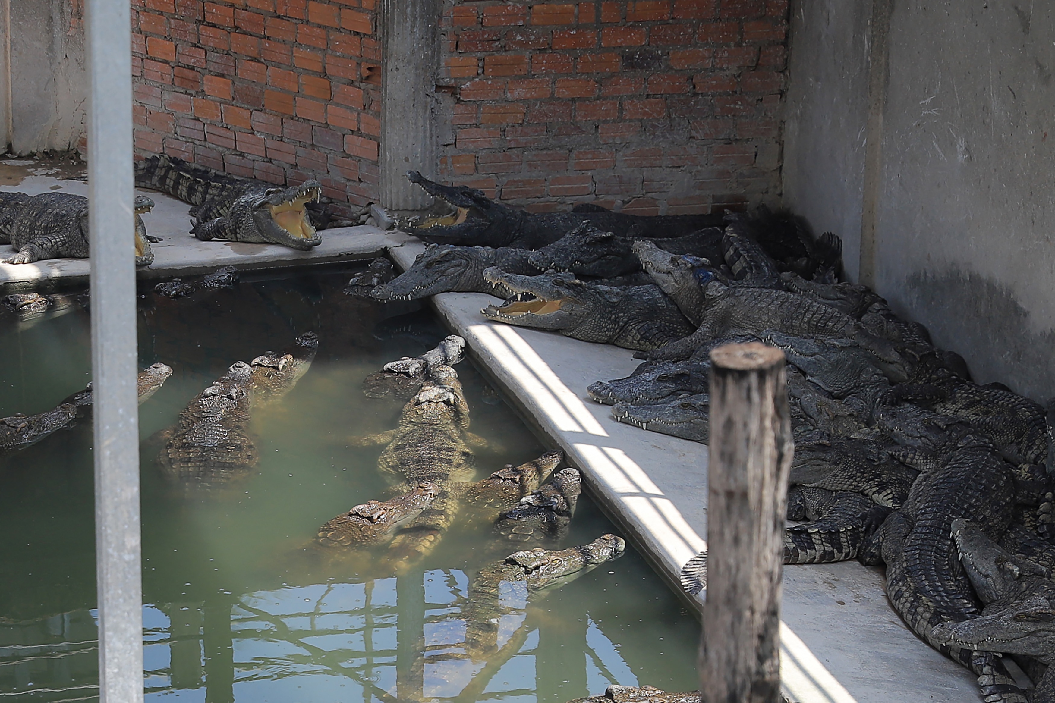 Angkor Wat’ın ünlü harabelerine açılan geçit kasabası olan Siem Reap’in çevresinde noktalı bir dizi timsah çiftliği var.