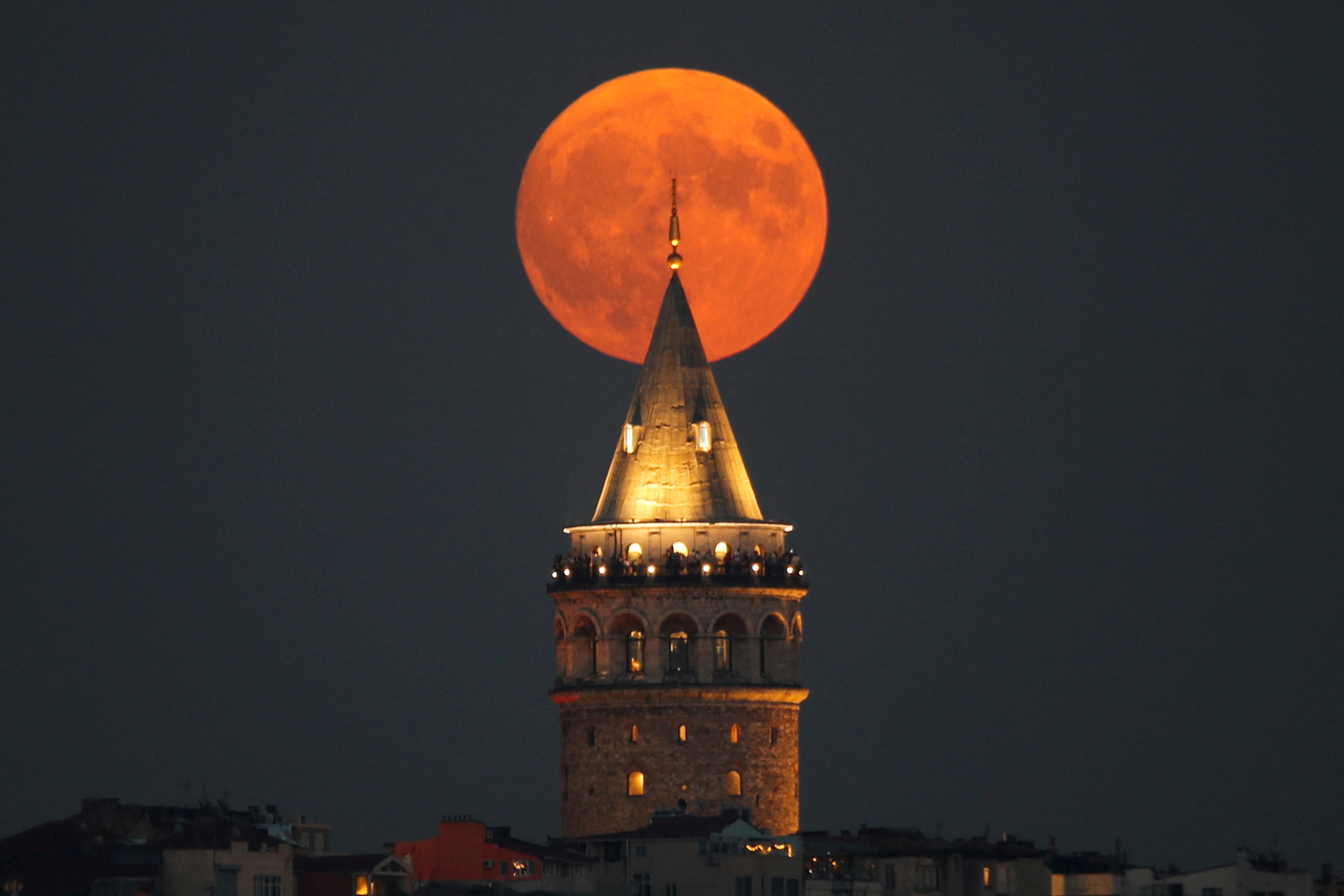 Dev turuncu ay İstanbul’da ortaya çıktı.(Reuters: Dilara Sinkaya)