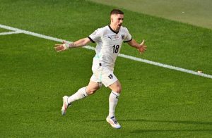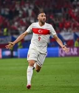Cenk Tosun, 26 Haziran 2024'te Almanya'nın Hamburg kentinde Türkiye ile Çek Cumhuriyeti arasında oynanan Euro 2024 F Grubu maçında golünü...